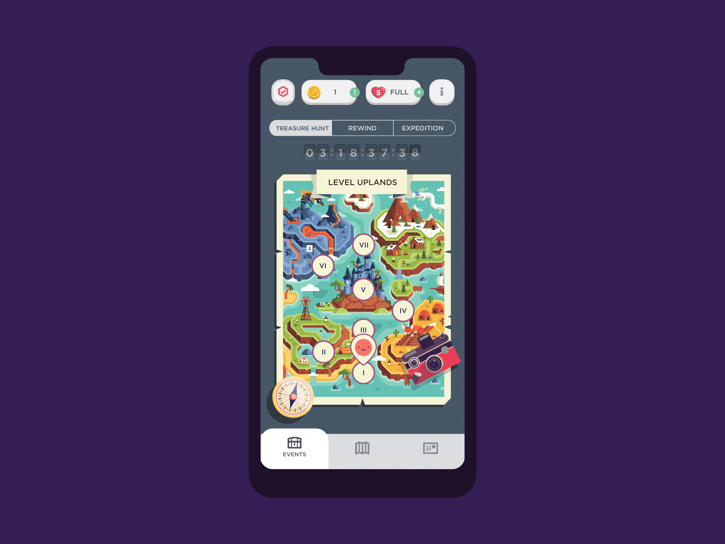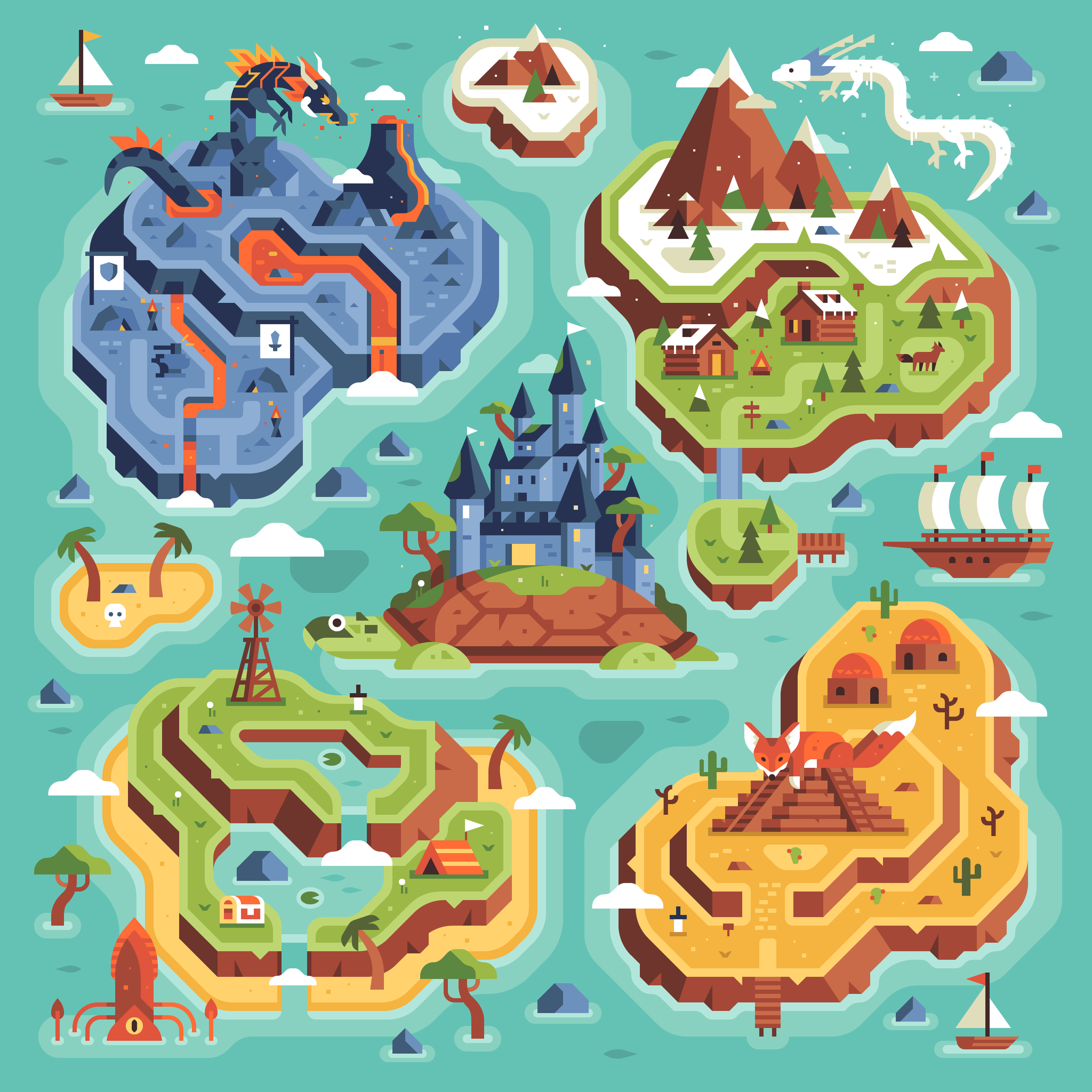 We worked with game studio Dots to create a Treasure Hunt map for its hit game Two Dots. The design was inspired by the maps of classic RPG games with a focus on unique and diverse regions and biomes across five different islands.